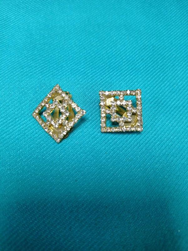 клипсы квадратные..ажурные..воздушно легкие за счет кружева..желтые..в камушках..легкие..красные.