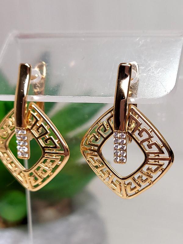 Серьги из медицинского золота (золотой 18К). Производитель: Xuping. Застежка английская. Длина 30 мм Размер 15 мм* 15 мм. Диагональ 20 мм. Не вызывает аллергии. Не темнеет. Не облазить.