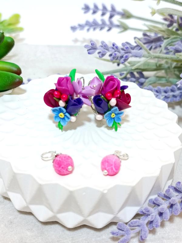 🌿серьги с цветами незабудки, розы, гортензия (ручная работа)