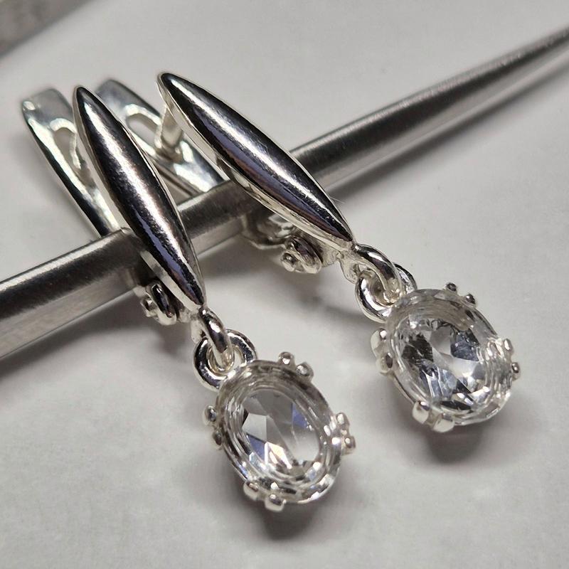 Серебряные серьги женские с натуральными природными камнями топазом сережки ручной работы...