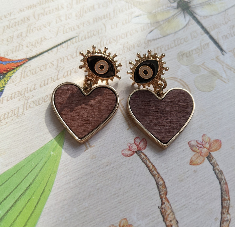 Сережки в стиле Kenzо вставки из натурального дерева состояние новых