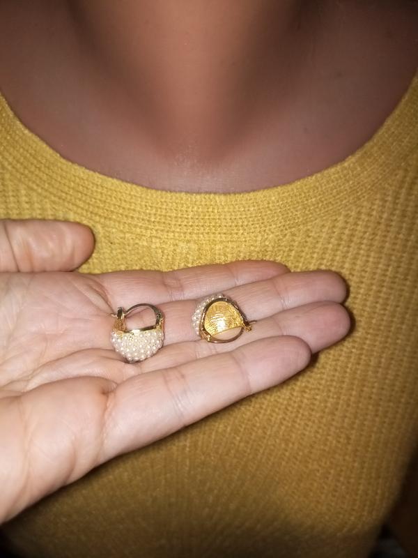 Сережки золотого кольору з ім. перлами. Діаметр біля 1см.