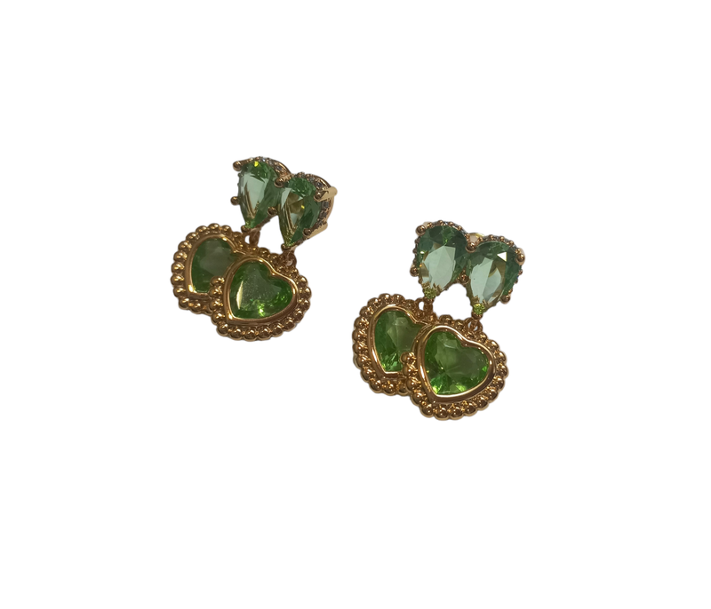 Серьги из металла золотистого цвета и стекло салатового цвета. Размер - 1,8 × 2,4 см.