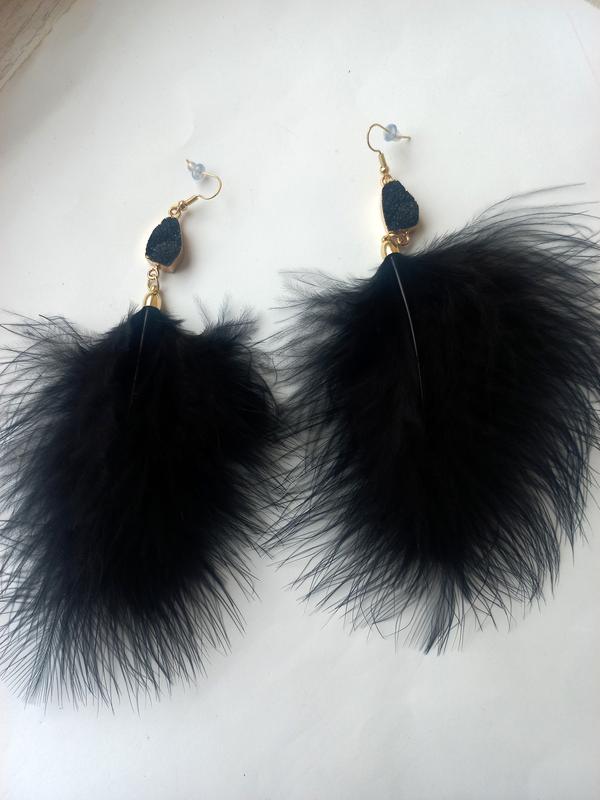Серьги перья черные