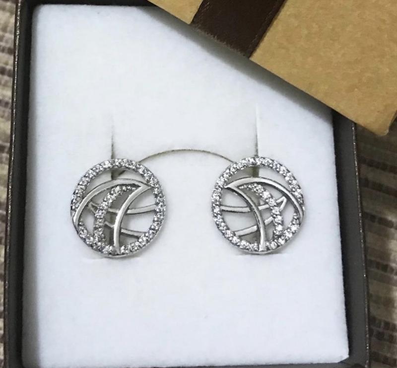 Срібні сережки з цирконієм. Англійський замок. Ніжна модель Сережок підійде для щоденної шкарпетки з будь-яким нарядом