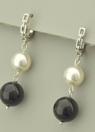 Артикул: 122186 Розмір сережки: 45х12 мм. Бренд: SUNSTONES Тип замочка: Англійська Діаметр: 12 мм. Матеріал: Мідний сплав Покриття: батьківщина Якість: гарна Камінь: майоріка (нат.) Колір: Чорний Колір: Молочний Колір3: Срібний Вага: 11 г.
