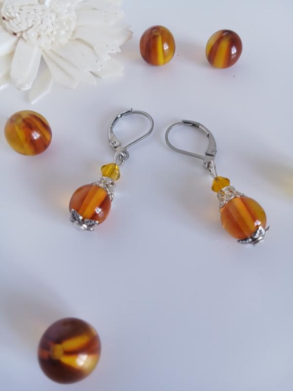 Авторские украинские украшения. Li Dina. Добавят еще больше красоты и блеск индивидуальности. серьги из серии: «Солнечные кларнеты» Вставка: бусины бернит8 мм, хрусталики Фурнитура: бижутерия Цвет: солнечный Длина:4,5 см Серьги очень хорошие. Они красивые, нежные украшения, сделанные из бернита. Благородные. Выглядят как настоящий янтарь в серебре. Если бы не указала, что бернит, никто бы и не догадался! Они единственное в мире украшение ручной работы. Больше таких нет! В большинстве своем продавцов просто умалчивает, что изделия именно из бернита. Вид, в носке, качество бернита=янтаря. На рынке часто предлагается Берни – вид искусственного «плавленого» янтаря из разных смол. Берни состоит из полиэфирных смол с содержанием янтаря до 5% или даже без него, имитирующих структуру раскаленного янтаря и полученных с применением технологии «микровзрывы» для создания декоративных внутренних трещин. Наличие насекомых, веточек, примесей не является показателем "подлинности" янтаря. Это все можно сделать. Агаты, кораллы, бирюза, жемчуг натуральный и чешской фирмы preciosa, говлит, перламутр. Браслеты, ожерелья, чекеры, шарики и кольца. Смотрите на моей странице За дополнительными вопросами, фотографиями обращайтесь . Очень много украшений. Постепенно прибавляю. Украшения ВСЕГДА только в единственном экземпляре