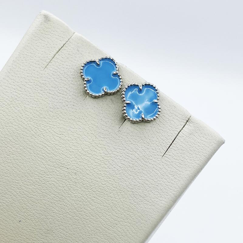 Сережки-пусеты серебряные с ювелирной эмалью "клевер" 2,13 г