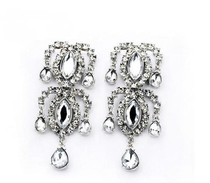 Шикарные серьги белые нарядные длинные с камушками