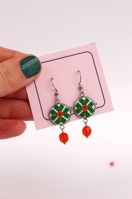Вышитые серьги / серьги с вышивкой / серьги в этно стиле