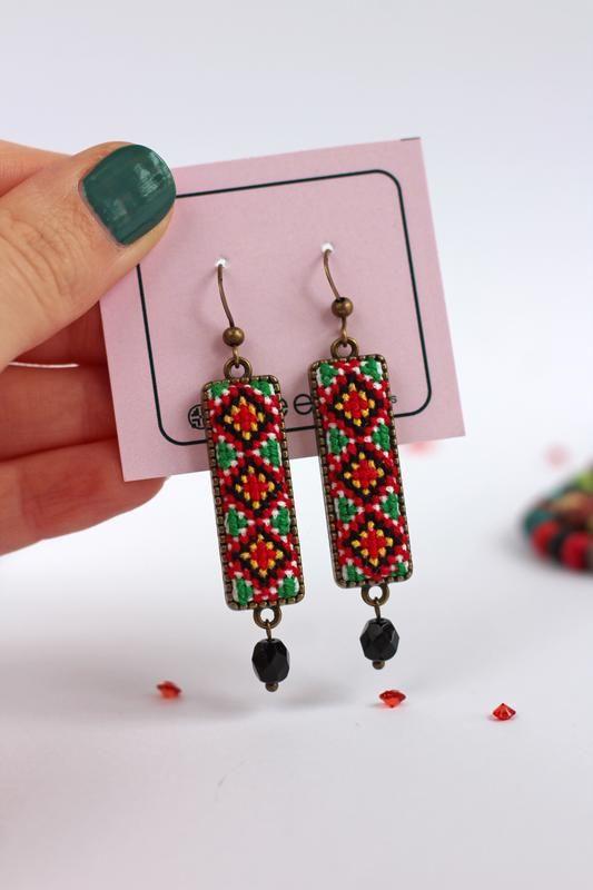 NZEE предлагает вышитые серьги ручной работы с мотивами традиционной народной вышивки, а также современные и эксклюзивные. Эти милые серьги точно придадут нежности и шарму вашему стилю! И вы сами увидите, как такая маленькая деталь может раскрыть характер своего владельца! Вышитые серьги от NZEE в ярких цветах и сочетаниях придают еще один прекрасный вид традиционной украинской вышивке! И благодаря этому наши вышитые серьги можно носить в повседневной жизни, и именно к этому мы призываем наших клиентов, чтобы украинская вышиванка стала популярной во всем мире! Вышитые серьги идеально дополнят ваш стиль и станут уникальным подарком для вашей девушки, мамы, дочери, бабушки, сестры, невесты, друзей, родственников и коллег. ХАРАКТЕРИСТИКА - размер основы 3х1 см - высота 6 см - латунь - нити мулине - хлопок ПОЧТА Серьги вы получите в тешью бумаге в подарочной коробке. В посылке также будет подарочная открытка для Ваших заметок! ИНСТРУКЦИЯ ПО УХОДУ Храните в сухом и чистом месте. Использование масел, кремов, духов и т.д. может повлиять на продолжительность жизни. Обратите внимание, что это предметы ручной работы, по сравнению с изображениями могут наблюдаться незначительные отличия. В процессе оформления заказа обязательно уточняйте все принципиальные для Вас свойства и характеристики заказываемого товара. Мы с радостью ответим на все ваши вопросы! Будьте уникальны! Цените традиции! Дополнительные характеристики: Цвет : Белый Цвет : Желтый Цвет : Зеленый Цвет : Красный Цвет : Черный Материал : Латунь Материал : Нитки Материал : Ткань