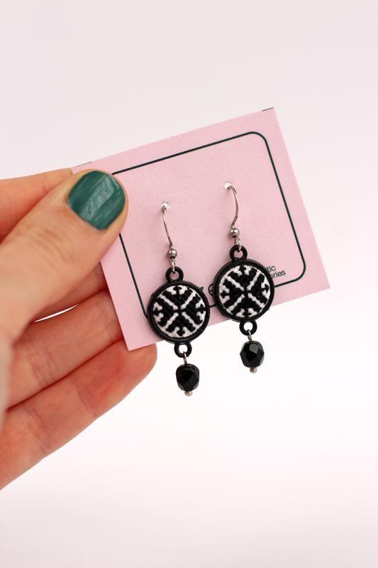NZEE предлагает вышитые серьги ручной работы с мотивами традиционной народной вышивки, а также современные и эксклюзивные. Эти милые серьги точно придадут нежности и шарму вашему стилю! И вы сами увидите, как такая маленькая деталь может раскрыть характер своего владельца! Вышитые серьги от NZEE в ярких цветах и сочетаниях придают еще один прекрасный вид традиционной украинской вышивке! И благодаря этому наши вышитые серьги можно носить в повседневной жизни, и именно к этому мы призываем наших клиентов, чтобы украинская вышиванка стала популярной во всем мире! Вышитые серьги идеально дополнят ваш стиль и станут уникальным подарком для вашей девушки, мамы, дочери, бабушки, сестры, невесты, друзей, родственников и коллег. ХАРАКТЕРИСТИКА - диаметр 1.2 см - высота 4.2 см - гипоаллергенная медицинская сталь - нити мулине - хлопок ПОЧТА Серьги вы получите в тешью бумаге в подарочной коробке. В посылке также будет подарочная открытка для Ваших заметок! ИНСТРУКЦИЯ ПО УХОДУ Храните в сухом и чистом месте. Использование масел, кремов, духов и т.д. может повлиять на продолжительность жизни. Обратите внимание, что это предметы ручной работы, по сравнению с изображениями могут наблюдаться незначительные отличия. В процессе оформления заказа обязательно уточняйте все принципиальные для Вас свойства и характеристики заказываемого товара. Мы с радостью ответим на все ваши вопросы! Будьте уникальны! Цените традиции! Дополнительные характеристики: Цвет : Белый Цвет : Черный Материал : Медицинская сталь Материал : Нитки Материал : Ткань
