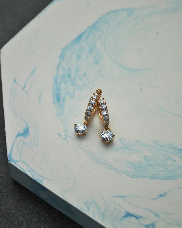Код: x113 При заказе одновременно нескольких украшений у нас в магазине - добавляем скидку 20 грн на каждое. Общая длина - 2.2 см, диаметр фианита - 5 мм. Мы бесплатно упаковываем в картонные ювелирные коробочки, также в продаже есть бархатные футляры. Ювелирная бижутерия, медицинское золото/сталь/сплав – это бижутерия из нержавеющей стали, на поверхность которой наносят позолоту 585 пробы или родий, в зависимости от желаемого цвета. "Медицинской" такую сталь стали называть благодаря гипоаллергенности и применению для пирсинга и прокалывания ушей. Украшения из медицинского золота не раздражают чувствительную кожу и безопасны для детей и взрослых, страдающих аллергией к обычной бижутерии или золоту и серебру. Мед. сталь не темнеет от контакта с чистой водой, но так как вы не можете быть уверены в составе примесей воды, мы рекомендуем снимать украшения перед ванной, сауной, уборкой, спортзалом. И надевать уже после использования парфюмерии, лака для волос, чтобы украшения вам служили годами.