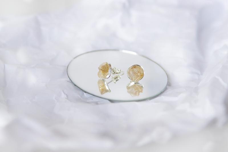 Сережки цвяшки з рутіловим кварцем - серьги с рутиловым кварцем - пуссеты
