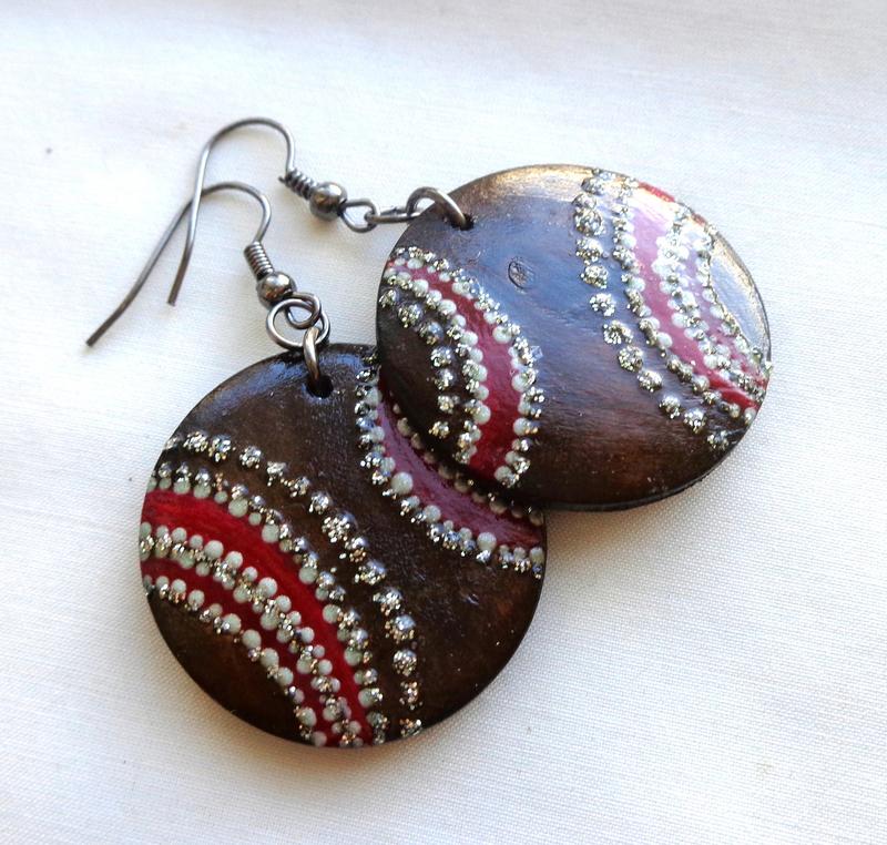 Серьги-деревянные"Радуга" - Оригинальный рисунок ручной работы , - Выполнены в одном экземпляре. - Диаметр изделия 5 см.