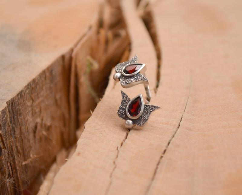 Серьги гвоздики Бутоны тюльпанов из серебра 925 пробы со вставками из темно-красного граната. предкрасное украшение как для юнной леди, так и для женщины, удобные для ежедневной носки, надёжно крепятся, пуссета с резьбой по вашему желанию камень может быть другим. Пишите свои пожелания и мы сделаем ваш неповторимый стиль ещё уникальнее :) Товар под заказ