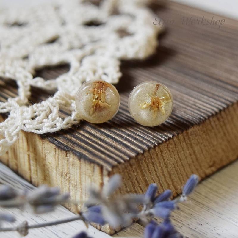 Сережки гвоздики с сухоцветами Размер 1 см #epoxy