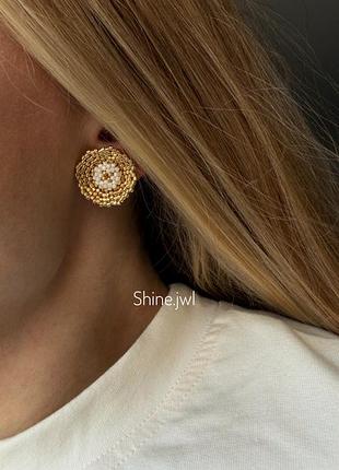 Сережки «квіточки» з бісеру золоті