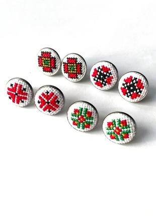 Пусеты отделаны микровышивкой, размер 1,5 см, качественная гипоаллергенная фурнитура из нержавеющей стали
