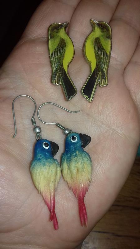 Радужные оптимистичные попугаи из полимерной глины, чрезвычайно качественное, анатомическое лепки со всех сторон украшения. На одном попугае хвостовая перышко немного короче, чем на хвостике другой птички, так уж покупка и это вообще не заметно (но перфекционизм требует уведомить ☺). Застежка - петля. Вторая пара птичек - изображение под лаком на металле, очень удачная цветовая палитра и силуэт, выглядит на ушках удивительно элегантно (сама удивила, когда впервые примерила). Застежка - гвоздик. Цена каждой пары 175 грн. Разом на 10% дешевше. Перед-, после-, безопасная оплата, почтовый оператор - по Вашему усмотрению. Возвращение на украшения не производите, все вопросы уточняйте перед покупкой в чате, пожалуйста. Радости от новых приобретений 😊!