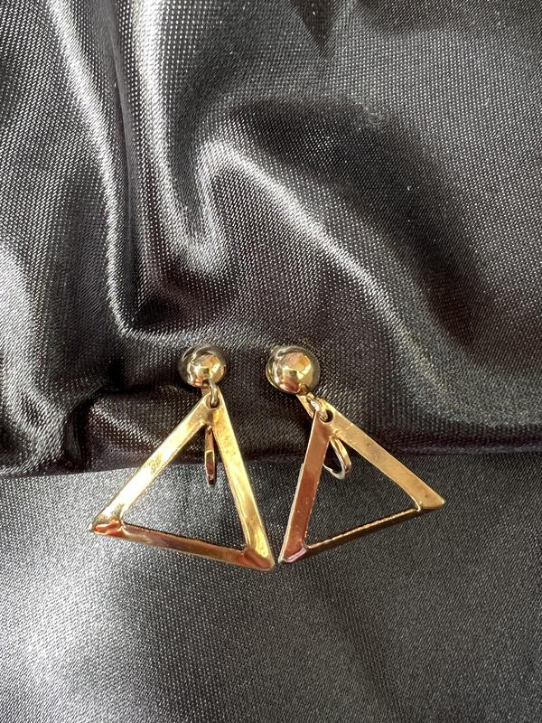 Клипсы в форме треугольника из ювелирного сплава в золотом цвете. США 70-80 те. Размер 2.8 х 2,0 см
