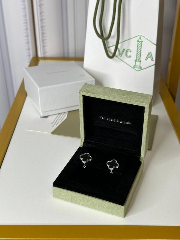 Сережки VCA Van cleef Средний размер 1,5 см С черным ониксом Серебро в позолоте, проба AU750 Серийный номер Премиум упаковка: кофр, коробка, шкатулка, пакет, сертификат