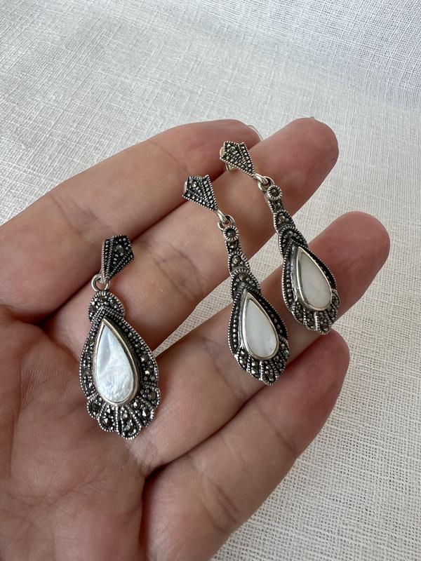 Сет винтажные серьги и кулон с марказитами и перламутром