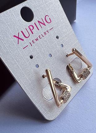 Серьги xuping треугольник геометрия медицинский сплав позолота