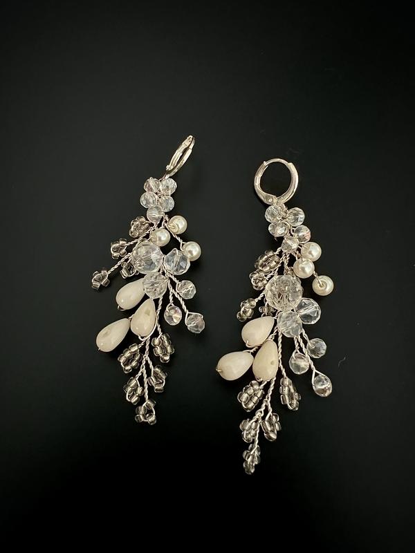Ручна робота. Виконані з ювелірного посрібненого дроту, чеського бісеру, хрустальних намистин і агату