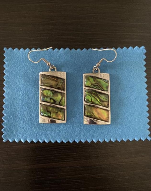 Серьги из нержавеющей стали с перламутровыми вставками. Длина 5,6 см. Замеры на фото
