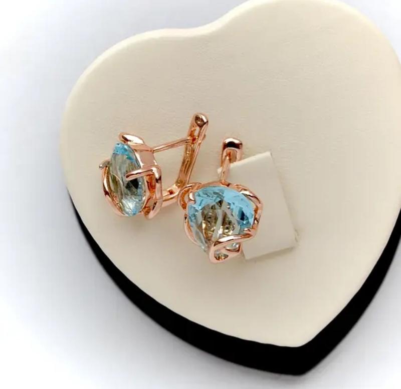 Серьги с голубыми цирконами (медицинское золото)