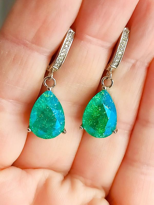 Серьги с английской застежкой 4.9 грамма,циркон бирюзовый в форме капли .