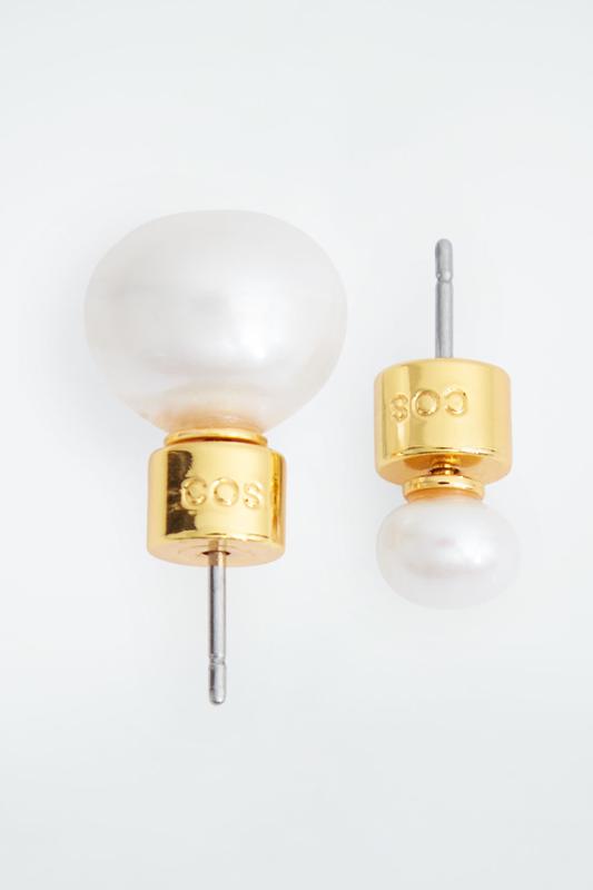 Серьги COS Оболочка: 85% пресноводной жемчужины, 15% переработанной латуни после потребления. Покрытие: 100% Золото. Велика перлина 1 см. Невелика перлина: 0,5 см. Ожидаем через неделю ✈️
