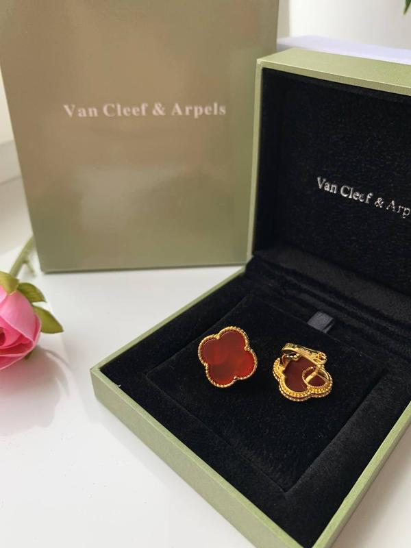 Серьги ван клиф в брендовой упаковке на английском замочке в лимонном золоте au750, красны...