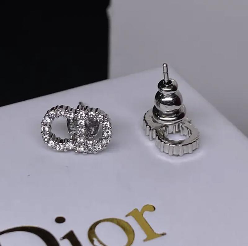 Сережки диор с логотипом с россыпью циркония, посеребрение (можно в комплекте с браслетом)