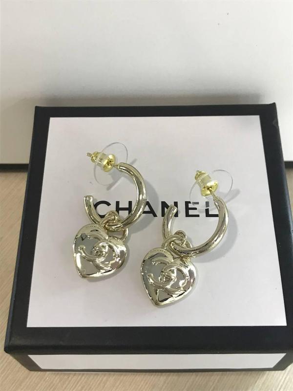 Брендовые серьги сердце шанель/chanel в позолоте