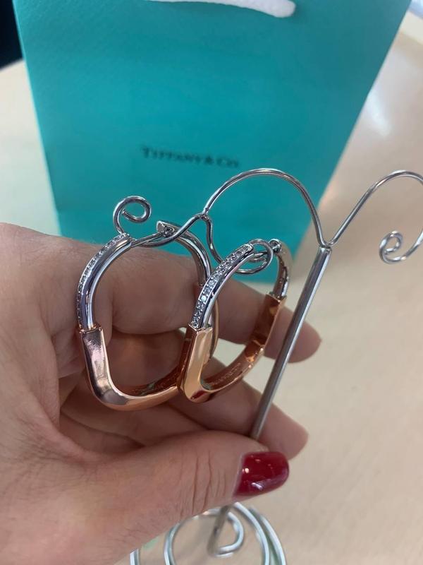 Тиффани серьги в форме овала - серебро и позолота, декар - цирконий