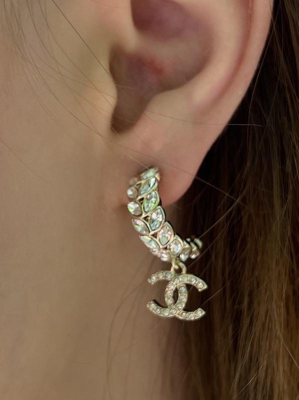 Брендовые сережки шанс с логотипом с россыпью циркония, посеребрение