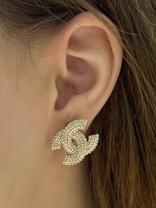 Брендовые сережки шанс логотип с камнями, позолота 18к