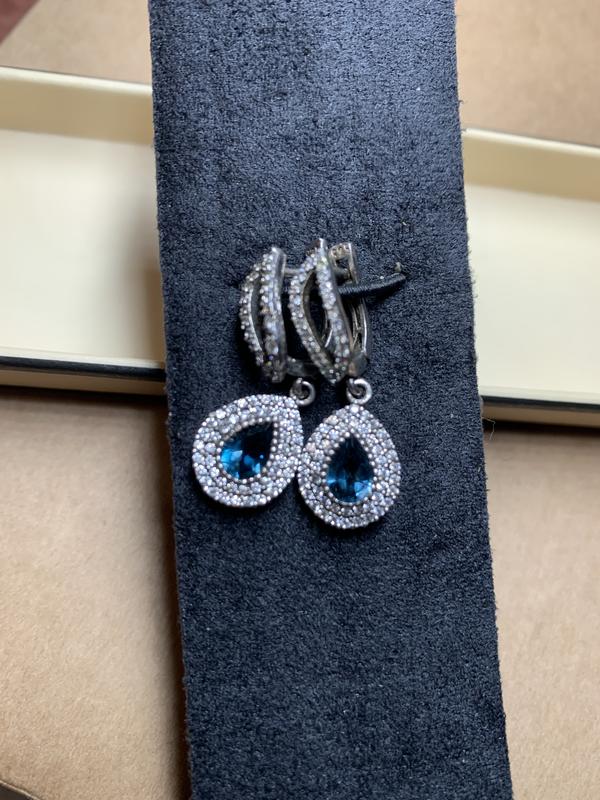 Сережки. срібні з темно-голубим топазом і фіанітами