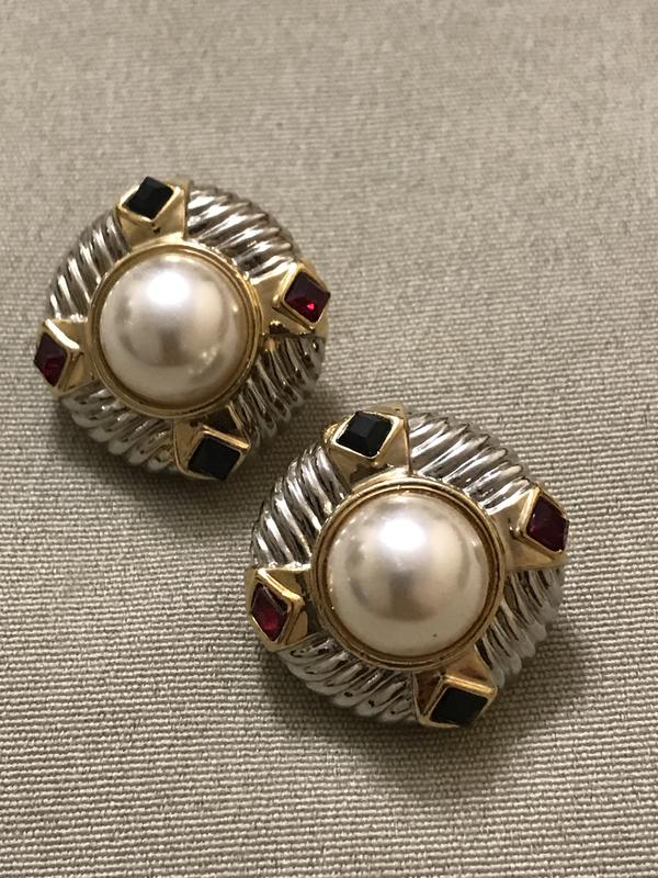 Шикарные клипсы с кристаллами сваровски и жемчужиной 2,5 винтаж