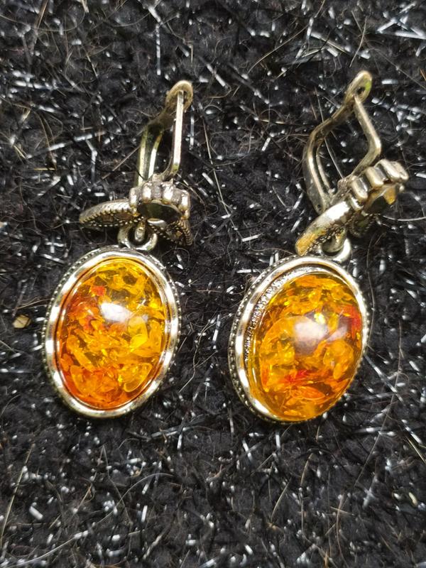 имитация янтаря ( не пластмасса, смола) Сплав серебра с примесями, не темнеет. Английский замок. Длина 2 см. Не носились Фианиты под гранат