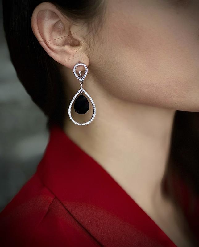 Серебряные серьги 925 проба с синтетическим ониксом и кубическим цирконом покрытые родием Мы предлагаем Вашему вниманию серьги из серебра. Вставки из камней-кубического циркония (ФИАНИТ) - синтетический материал, имитирующий алмаз и синтетический оникс. Арт.638 Металл: серебро 925° Длина: 50 мм Размер (капля): 22*32 мм Приблизительный вес: 13,07 Родение – покрытие изделий из серебра слоем белого родия – металла платиновой группы, обладающего высокой прочностью и хорошими отражающими свойствами, что придает изделиям ослепительно-белый цвет. Аналоговое покрытие используется при изготовлении модных изделий из белого золота. Нанесение родии на ювелирные изделия уменьшают износ, защищают от внешних повреждений, увеличивают твердость, придают яркий блеск. Украшения производятся на украинском заводе, который находится в городе Белой Церкви. Наш интернет-магазин доставит для Вас понравившиеся украшения в любую точку Украины. Все товары изготовлены на украинском заводе, по отечественным стандартам, что гарантирует высокое качество продукции. Все изделия апробованы и опломбированы, что еще раз подтверждает гарантию качества. Наши товары действительно высочайшего качества, которая проверена временем, поскольку наша продукция представлена на рынке Украины более 25 лет! Все ювелирные изделия новые, с этикеткой, с пробой. Прошли контроль государственной палатой пробирного контроля.