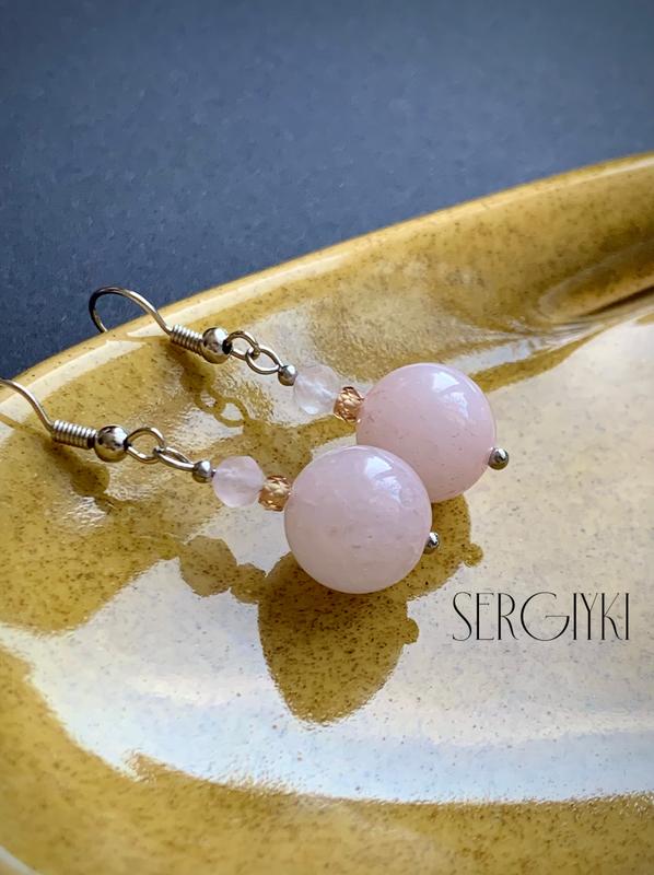 Ніжні жіночі сережки з рожевим кварцем це формі кулі 10 мм та гранованого ронделя 5 мм в поєднанні з фанатом ювелірної огранки форма рондель, колір шампань. Всі елементи фурнітури - ювелірна (медична, нержавіюча ) сталь. Комплектація: сережки з силіконовими заглушками на паперовій планшетці у упаковці. Натуральний рожевий кварц це найвідоміший оберіг любові і сімейного щастя. Зцілює серце, допомагає йому відкритись, вчить прощати образи і відпускати біль, зцілює серце і душевні рани. Розкриває таланти і допомагає творчім людям проявлятись, виражати свої почуття і ревюалізовувати ідеї. Сприяє омолодженню і підсилює природню привабливість. Посилює фертильність. Підвищує сексуальність. Помʼякшує гнів, допомагає позбутись стресів. Додає впевненості в собі і своїх силах. Дуже крутий помічник на шляху любові до себе. Вчить довіряти собі і пробачати помилки. Підтримує в критичні моменти. Відновлює після травматичного досвіду. Знімає стрес, напругу, та почуття провини. Дуже добре підходить для медитації. Чакра АНАХАТА Афірмація: Я Є ЛЮБОВ!