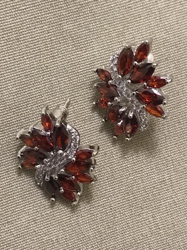 Серьги пусеты с гранатовым стеклом американский винтаж