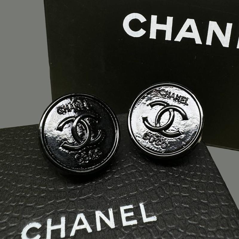 Сережки круглые с логотипом в черном цвете, посеребрение