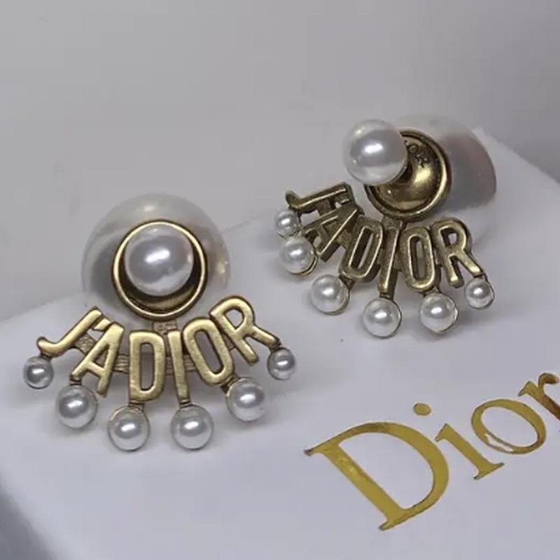 Сережки диор с логотипом и жемчугом, позолота 18 к (можно приобрести с браслетом)
