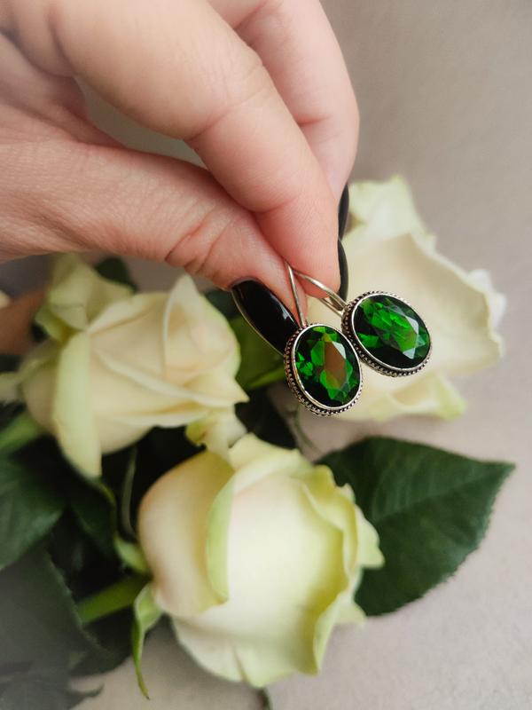 Сережки смарагдовий кварц овал. кульчики зі смарагдового кварцу в сріблі. зелені каменіі....