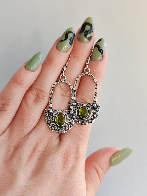 Сережки хризоліт (перидот). сережки з хризоліту овал. індія.
