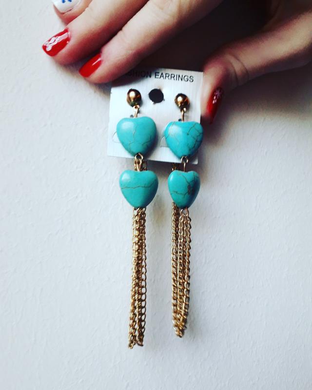 Серьги под бирюзу, интересно сделана застёжка. Двойной цепочкой.